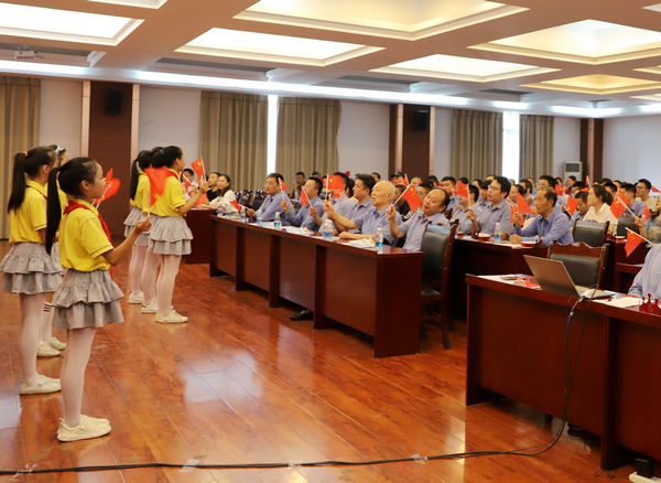 來自實驗中學的8名小學生演唱的《歌唱祖國》在全場掀起互動,員工們揮舞著手中的小紅旗讓活動氣氛達到高潮。公司領導先后致辭,副總經理謝波、財務總監(jiān)尹世祥表達了對祖國的祝福,激勵員工努力工作,為國家、為企業(yè)多做貢獻。