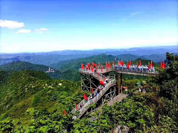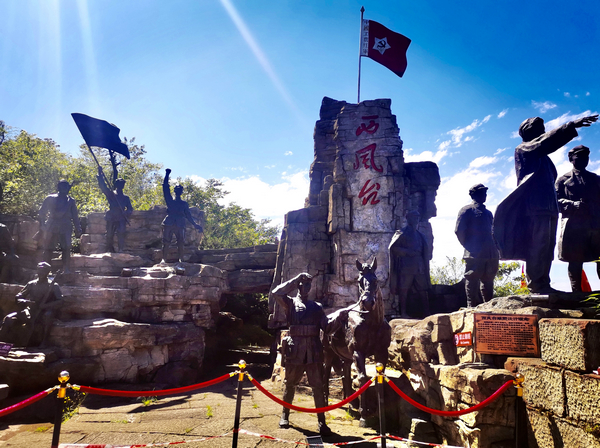 一首《憶秦娥·婁山關(guān)》曾讓多少人為之感嘆!沿著崎嶇的山路,我們乘車來到婁山關(guān)的頂峰西風(fēng)臺(tái)。獵獵西風(fēng)卷起漫天紅旗,千里群山盡收眼底。“雄關(guān)漫道真如鐵,而今邁步從頭越”一股豪邁之氣油然而生。