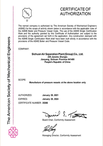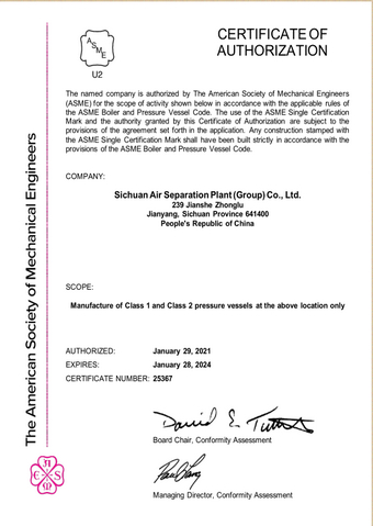 ASME授權(quán)證書U