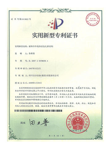 實用新型專利證書-被保冷件絕熱層包扎新結(jié)構(gòu)