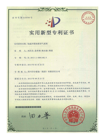 實用新型專利證書-低溫冷箱的密封氣系統(tǒng)