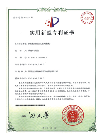 實用新型專利證書-膨脹機(jī)噴嘴齒式傳動機(jī)構(gòu)