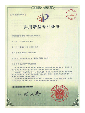 實用新型專利證書-膨脹機(jī)切向旋流阻氣軸封