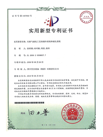 發(fā)明專利證書-一種高效利用液化天然氣冷能的空分系統(tǒng)