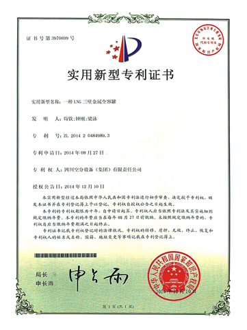 實用新型專利證書-一種車用LNG臥式焊接絕熱氣瓶自增壓裝置