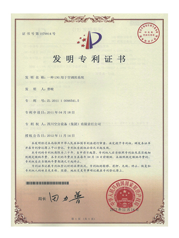 發(fā)明專利證書-一種LNG用于空調(diào)的系統(tǒng)