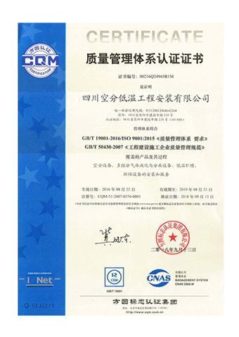 質(zhì)量管理體系認(rèn)證證書