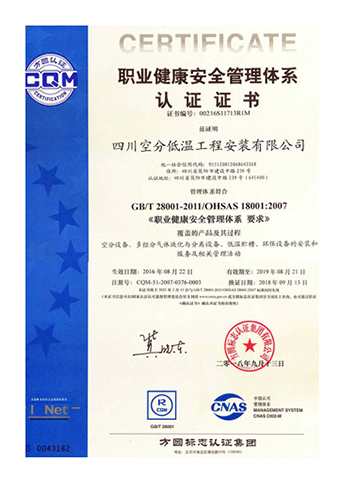 職業(yè)健康安全管理體系認(rèn)證證書